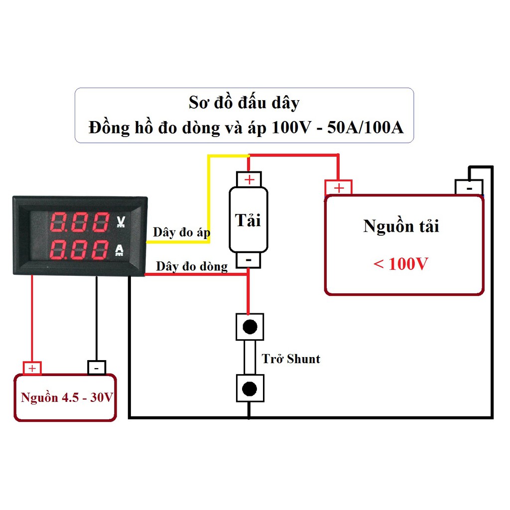 Đồng Hồ Đo Dòng Điện Điện Áp 100V 50A - Kèm Trở RSHUNT
