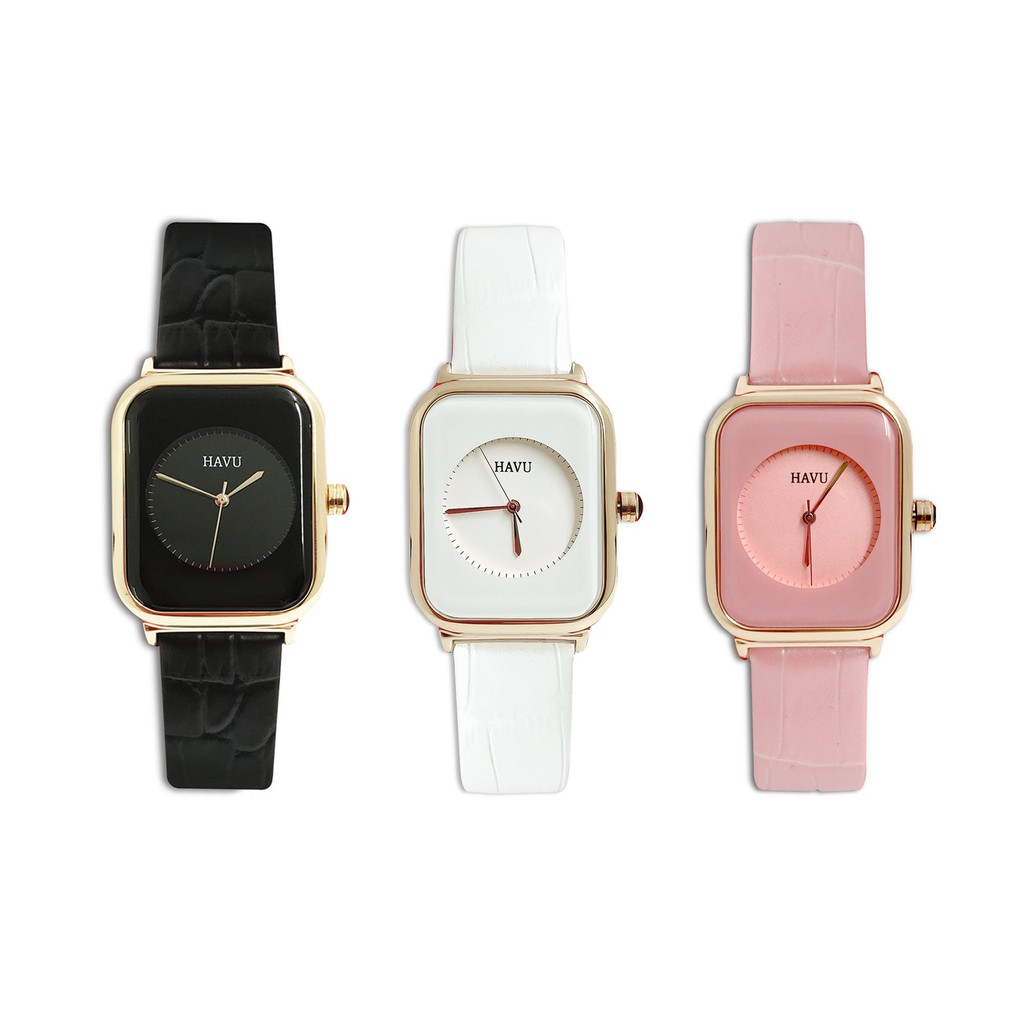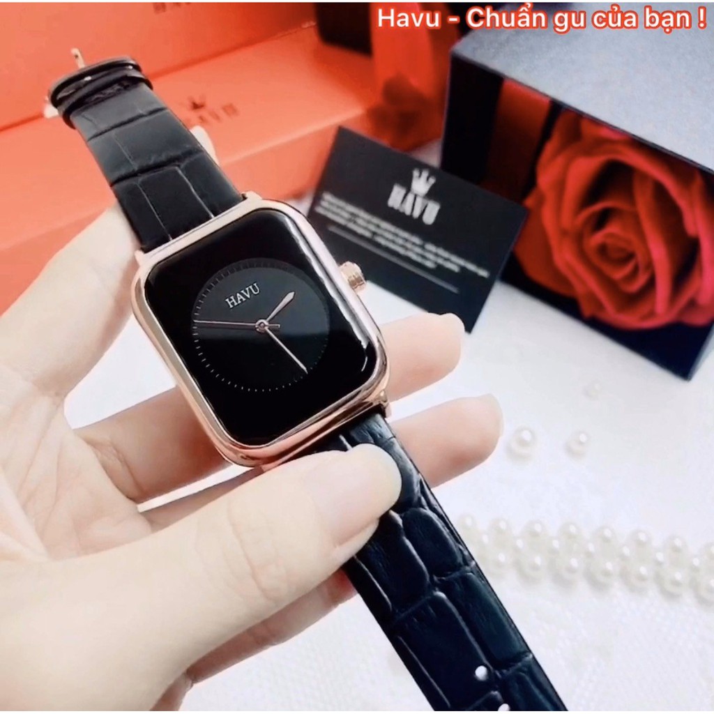 Đồng Hồ Nữ HAVU Chính Hãng Full Box Mặt Vuông 35mm Dây Da Cao Cấp Kính Chống Xước, Chống Nước Tuyệt Đối - Hồng