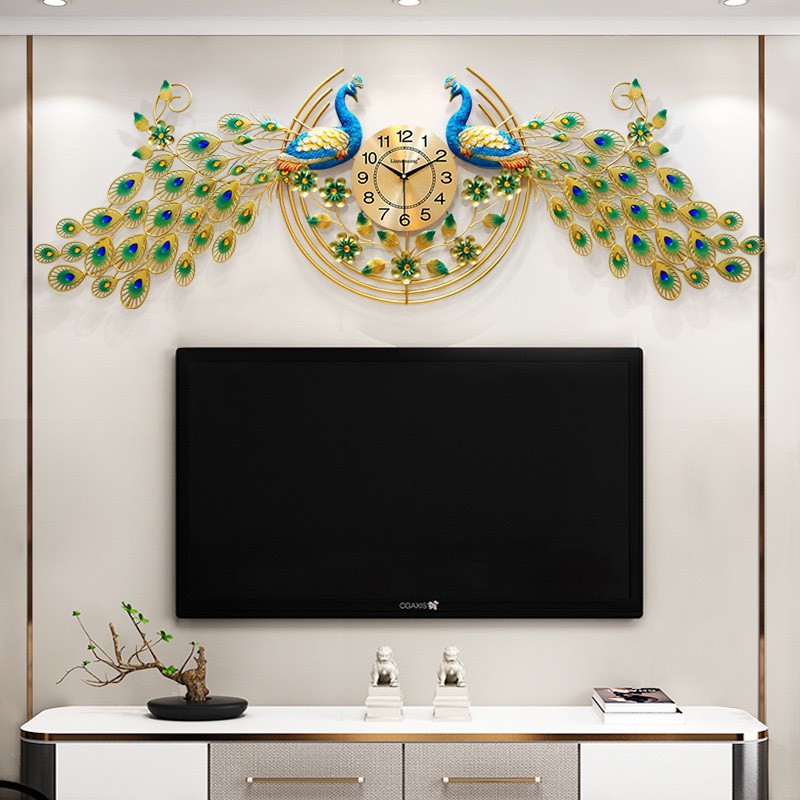 Đồng Hồ Treo Tường, Đồng Hồ Trang Trí Đôi Chim Công KD2888