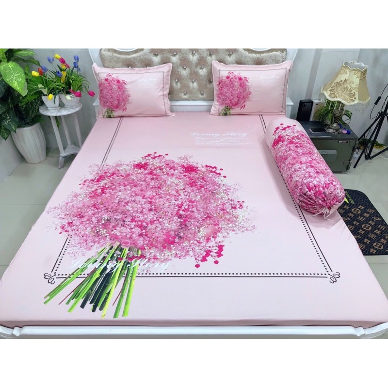 Ga gối thun lạnh 5D cao cấp mẫu hoa ( 3 màu)