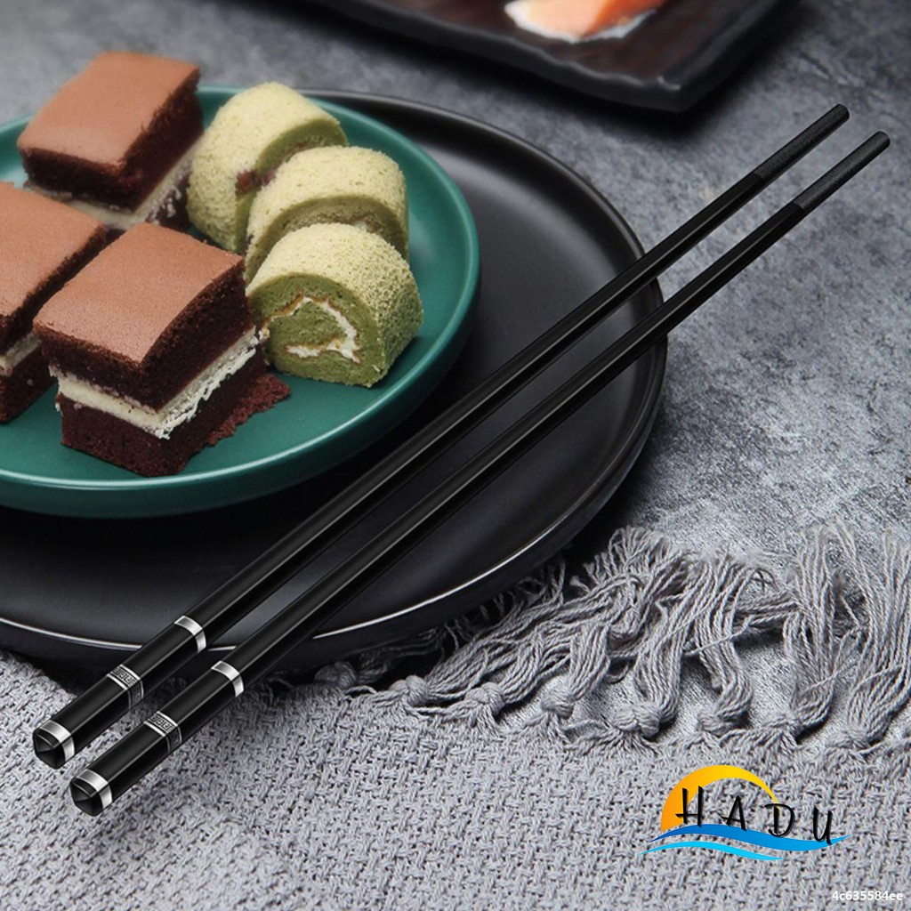 [Hộp 10 Đôi] Đũa Nhật Hợp Kim Cao Cấp HADU, Chống Mốc Chịu Nhiệt, Đũa Ăn Cơm Chống Trơn Trượt Đuôi Kim Loại Sang Trọng