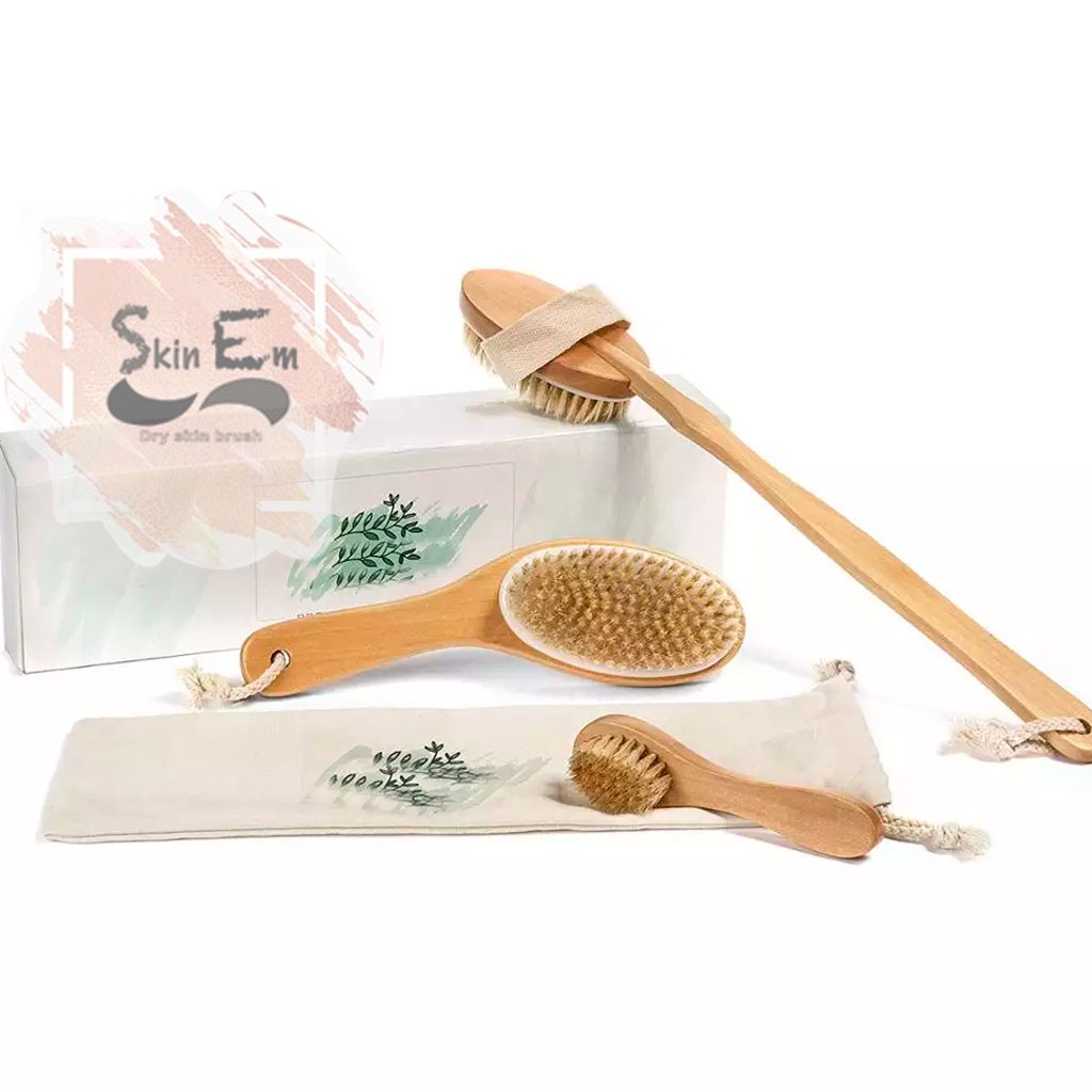 Bàn chải khô cán ngắn cong lông tự nhiên SkinEm 100%