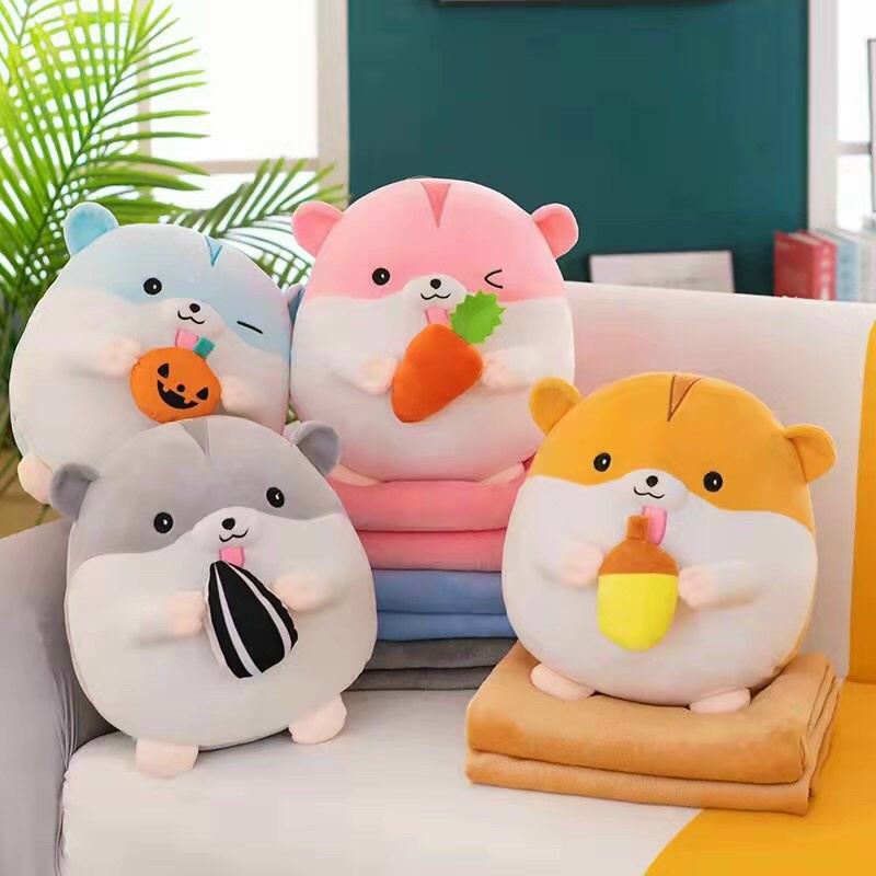 Bộ Chăn Gối Văn Phòng Hình Thú Siêu Mềm - Gấu Bông Thỏ, Heo, Sóc, Chuột Kèm Chăn Tiện Lợi