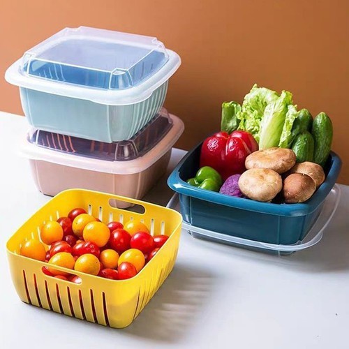 Bộ rổ nhựa kèm chậu đựng rau trái cây có nắp đậy kèm lỗ thoát nước 3 trong 1 đa năng[FREESHIP]