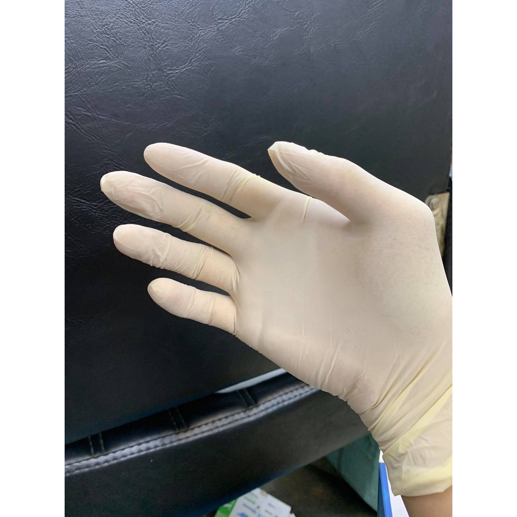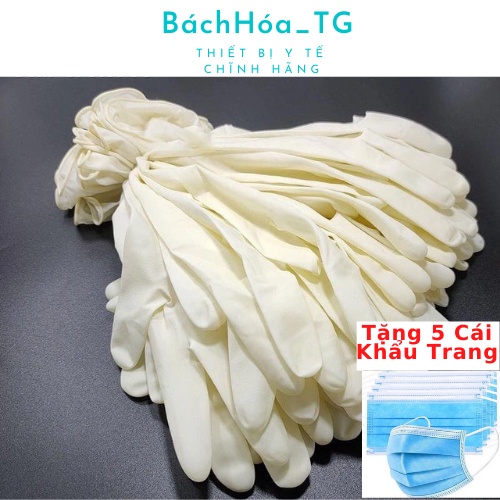 Găng tay y tế LATEX không bột hộp 50 cái màu trắng sữa tặng 5 cái khẩu trang kháng khuân BáchHóa_TG