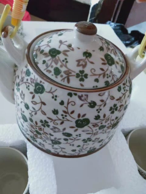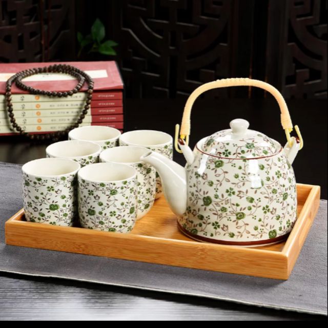 [GIÁ HỦY DIỆT] COMBO BỘ ẤM CHÉN GỐM SỨ HOA VĂN HOẠ TIẾT Hoa Nhí Xanh LÁ