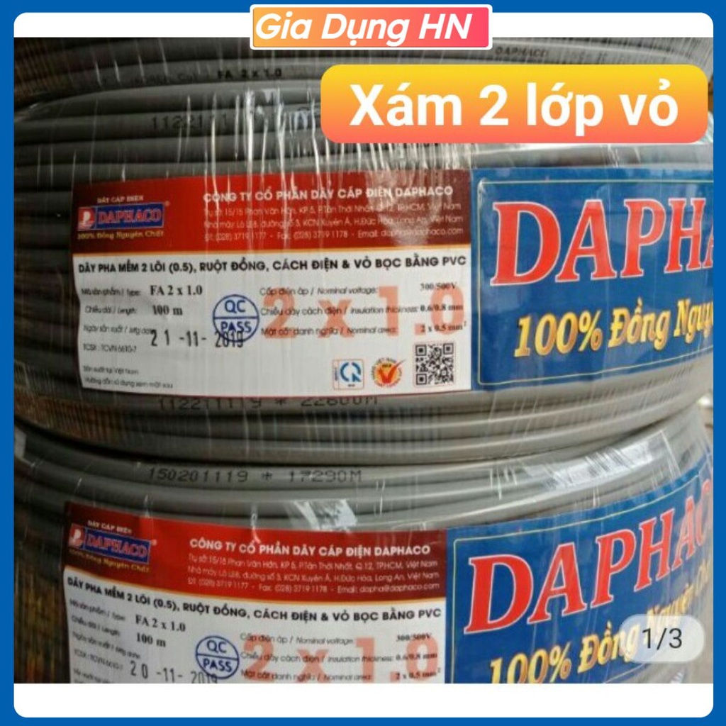 Dây điện xám bọc 2 lớp đồng 100%(GIÁ HỦY DIỆT) - Bán lẻ theo mét nhé