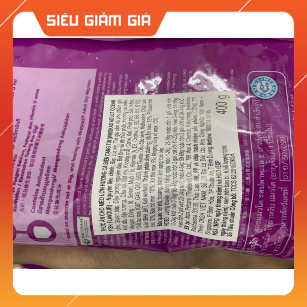 [GIẢM GIÁ] Hạt Whiskas thức ăn cho mèo con, mèo trưởng thành gói 400g - petshop số 01