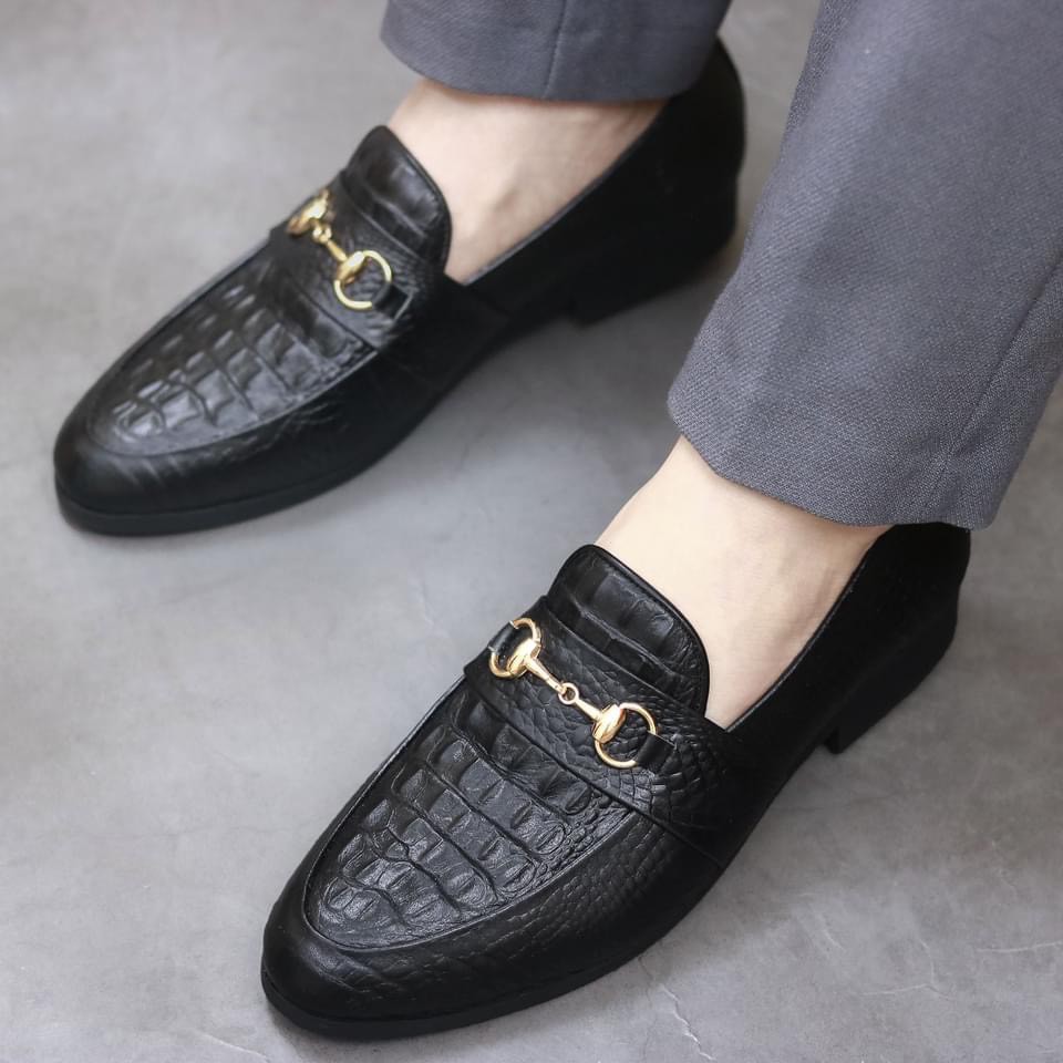 GIÀY DA NAM DẬP VÂN CÁ SẤU ĐẾ KHÂU CHẮC CHẮN CAO 3CM - HÀNG VIỆT NAM XUẤT DƯ