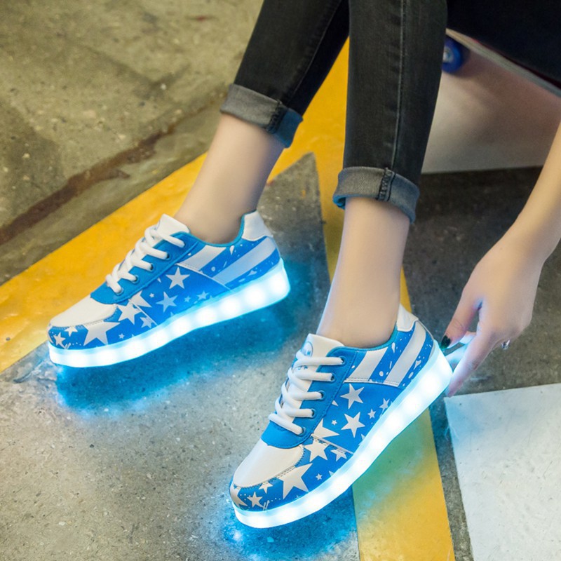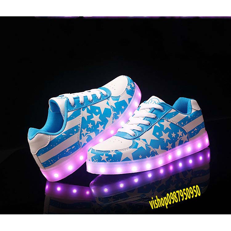 Giày Đèn Led Phát Sáng Ngôi Sao xanh 7 Màu 8 Chế Độ Sáng độc đáo cho dịp biểu diễn,lễ hội đường phố