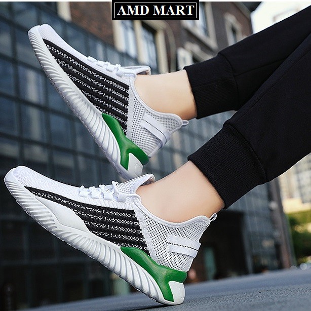Giày thể thao nam giày sneaker nam W61 dệt sợi cao cấp êm chân thoáng khí phối màu đen trắng nổi bật