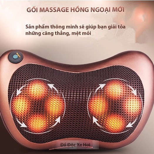 Gối massage hồng ngoại 8 bi 2 chiều cao cấp, gối mát xa cổ vai gáy chính hãng công nghệ Nhật Bản