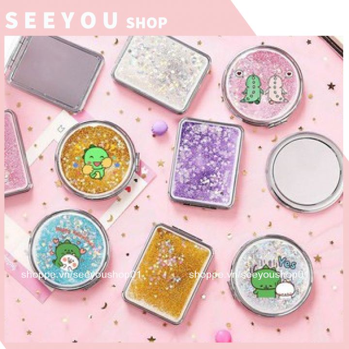 Gương Gấp Gọn Trang Điểm mini cầm tay Kim Loại Chống Vỡ 2 mặt cao cấp - Hình Capybara Loopy Lotso Kim Tuyến Nước bỏ túi