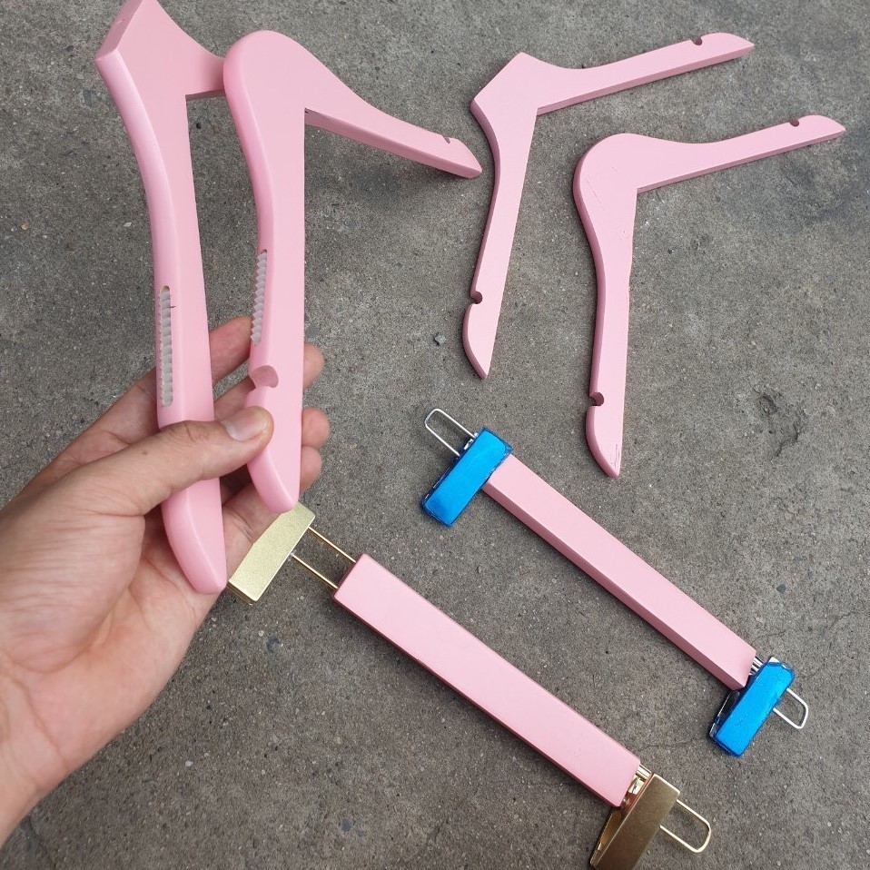 [Hàng bán lẻ] Móc gỗ hồng và kẹp gỗ hồng. Móc áo, kẹp quần bằng gỗ, sơn PU đẹp