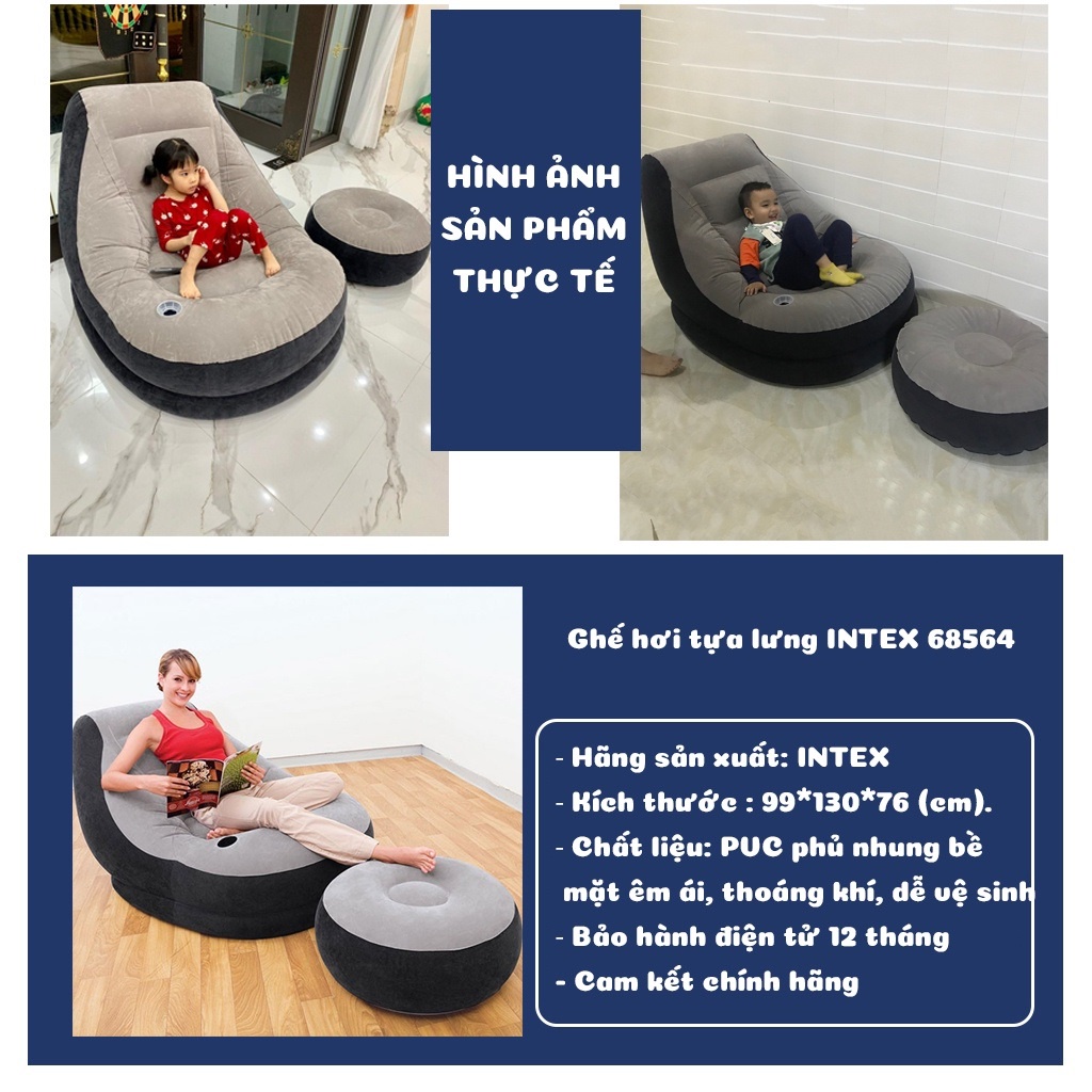 [Hàng Cao Cấp] Ghế hơi tựa lưng bọc nhung tặng kèm đệm hơi lót chân - Bảo Hành 12 Tháng