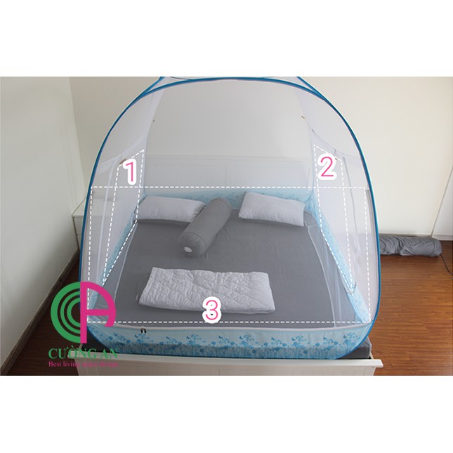 (Hàng chính hãng 2 cửa) Màn chụp tự bung đỉnh rộng cường an có chân viền vải cao cấp