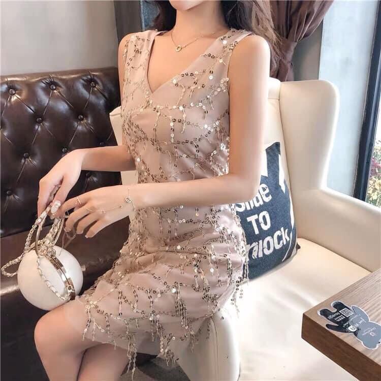 HÀNG NHẬP CAO CẤP LOẠI 1 🌼 ĐẦM BODY ĐÍNH KIM SA Chất liệu: lớp trong thun, ngoài lưới, kim sa Kiểu dáng: đầm ôm, cổ V,