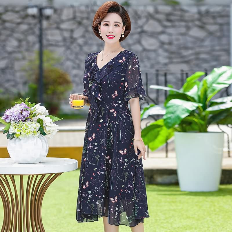 Đầm Hoa Trung Niên Che Bụng Cho Mẹ VH52 - Hàng Quảng Châu Cao Cấp