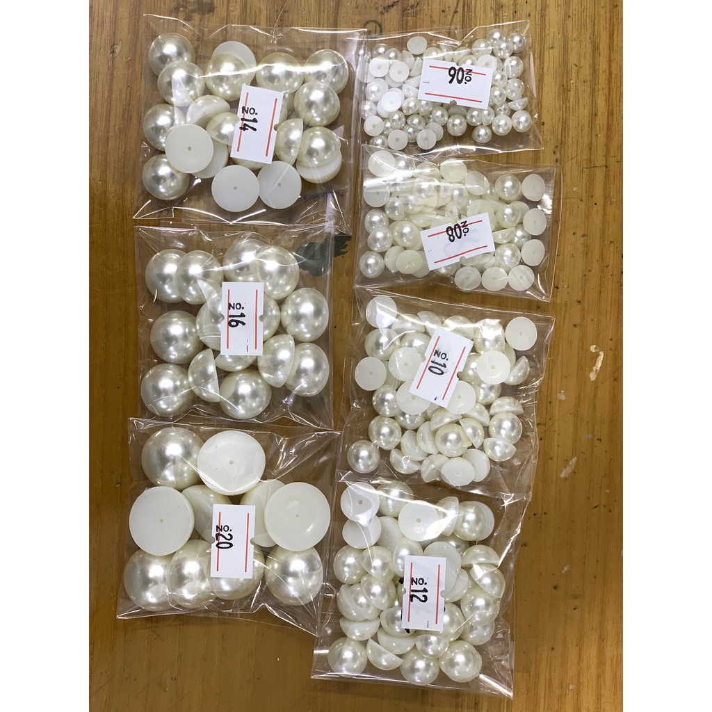 Hạt trai nửa màu trắng ngà loại đẹp: 5mm-6mm-7mm-8mm-10mm-12mm-14mm-16mm-18mm-20mm