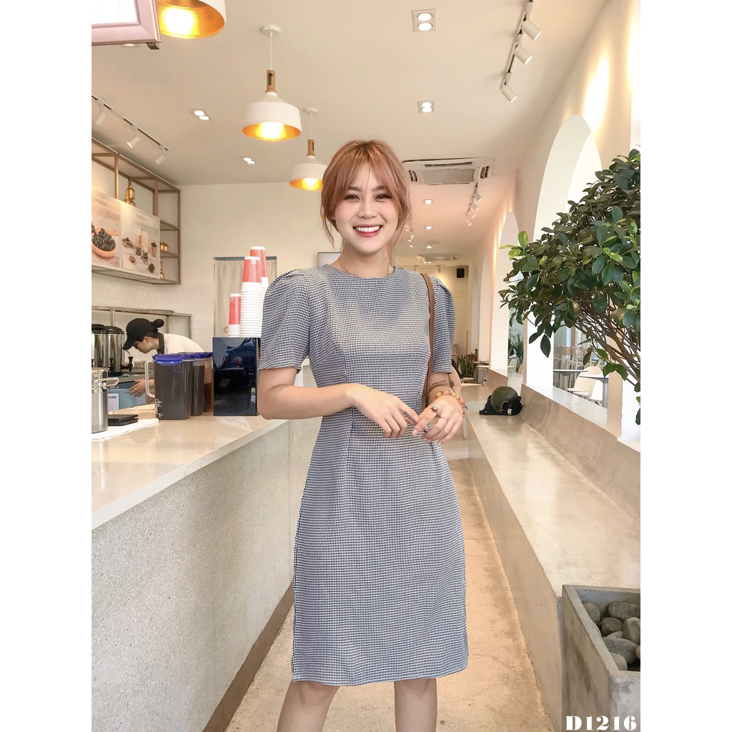 [ Hình thật ] D1216 Đầm caro đen đỏ nâu