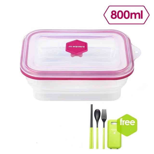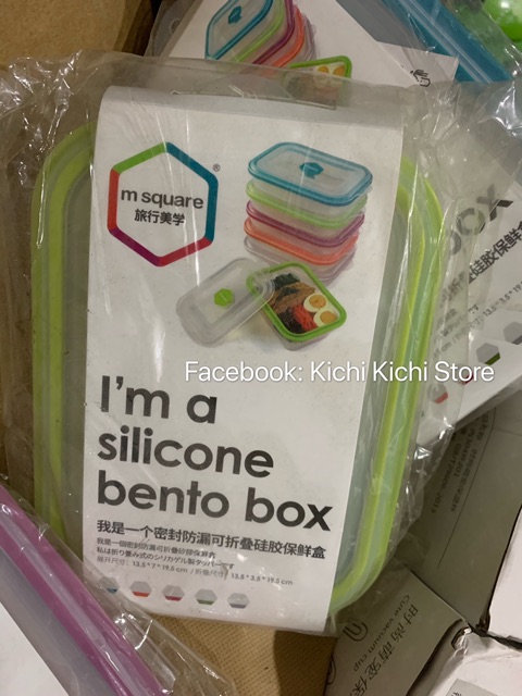 (HÌNH THẬT)Hộp đựng thức ăn silicone gấp gọn, chịu nhiệt tốt thương hiệu Msquare Nhật Bản.