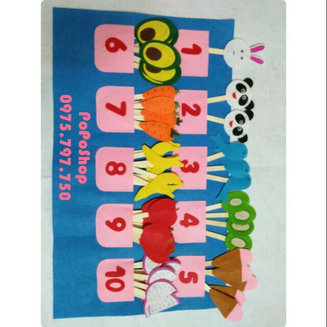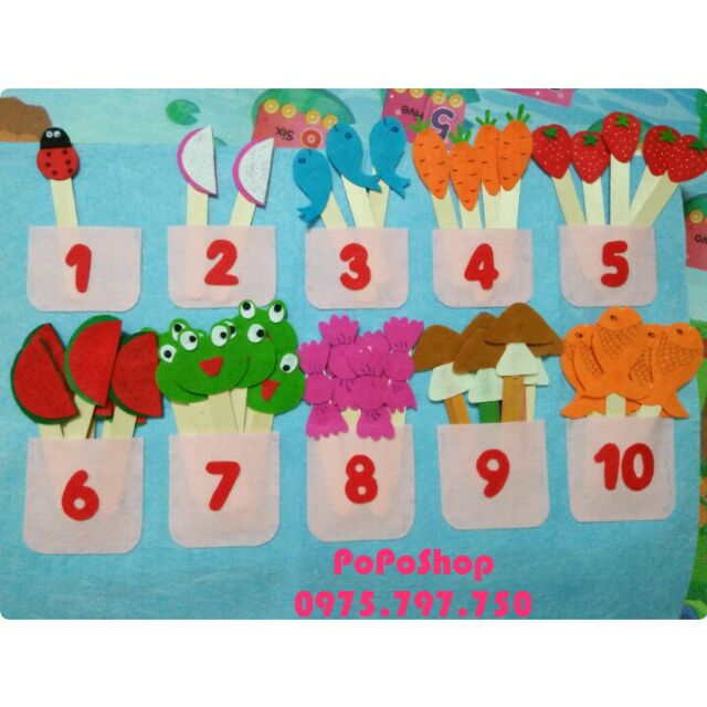 HỌC LIỆU CHO BÉ: Bộ thẻ tập đếm từ 1-10 bằng vải dạ