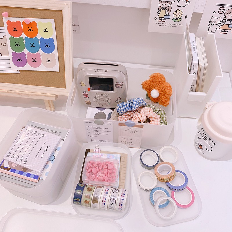 Hộp Đựng Đồ Trang Điểm Để Bàn Tiện Lợi Phong Cách Hàn Quốc Nhựa Cao Cấp Màu Trong Mờ