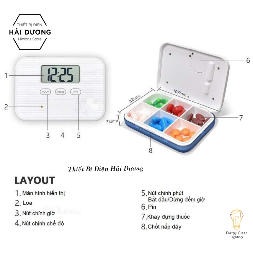 Hộp đựng thuốc hẹn giờ nhắc uống thuốc, báo thức hàng ngày , đếm thời gian đa năng hiển thị đồng hồ xem giờ CR-210
