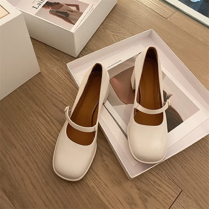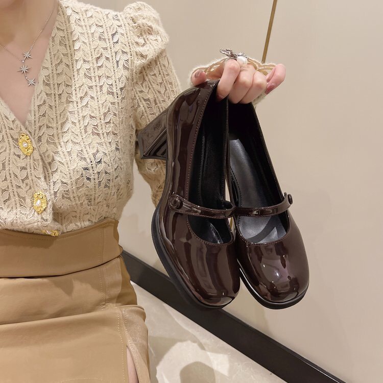 Giày cao gót Mary Jane hàng chuẩn loại cao cấp (có sẵn 34-40) - Giày cao gót nữ đế vuông da bóng 7cm
