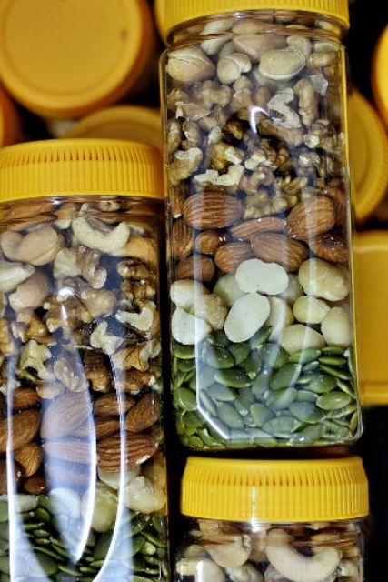 Hủ nhựa cao vuông nắp vàng 500ml 6x16cm