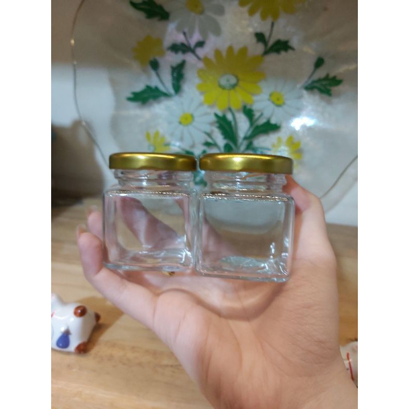 4 Hủ thủy tinh 50ml thân vuông nắp thiếc chiết mỹ phẩm