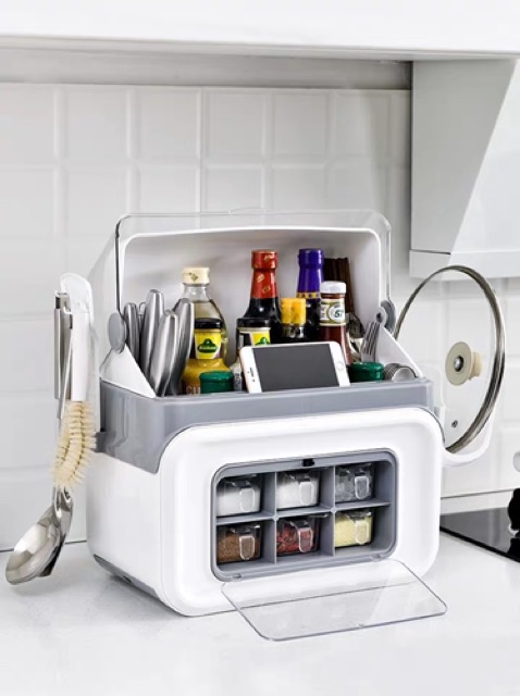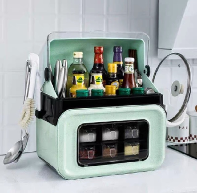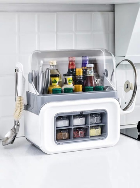 Kệ gia vị nhà bếp đa năng có nắp đậy bên trên và nắp đậy gia vị trống bám bụi bẩn