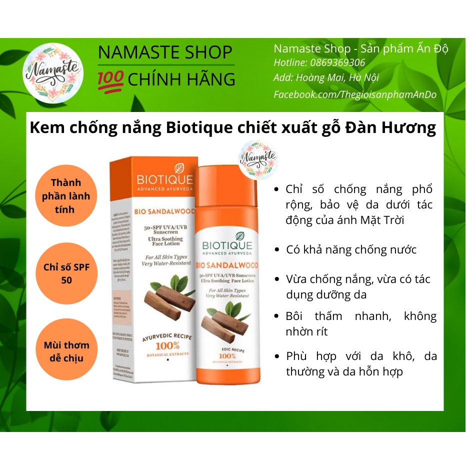 Kem chống nắng - Biotique Sandalwood (Tinh chất gỗ Đàn Hương) SPF 50