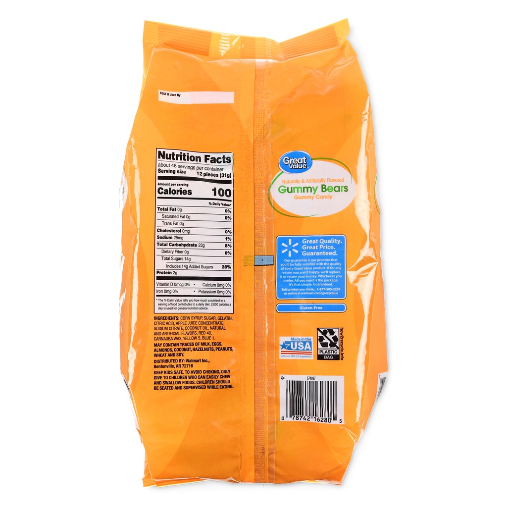 Kẹo dẻo gấu Great Value Gummy Bears Chewy Candy 1.47kg Hàng Mỹ có bill