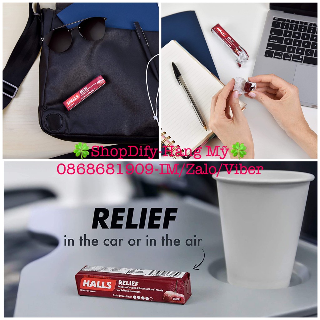 Halls Relief cough drop Kẹo ngậm giảm ho, thông cổ của Mỹ Chanh, Dâu, Bạc Hà, Cherry, Không Đường, 30, 70, 180, 200 viên