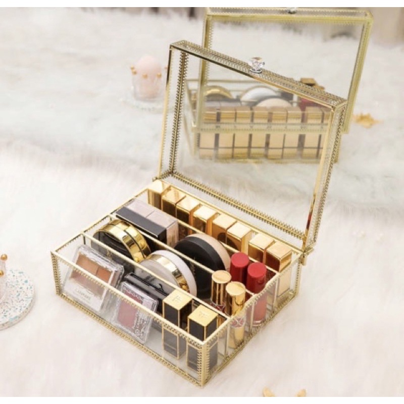 Khay đựng phấn son viền kim loại có nắp "sẵn hàng"