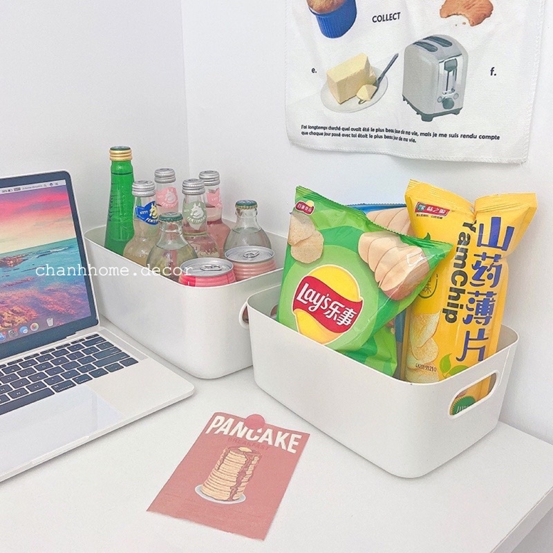 Khay nhựa đựng đồ màu trắng có tay cầm, hộp lưu trữ sắp xếp đồ dùng skincare, nhà bếp, phòng khách |Chanhhome.decor|