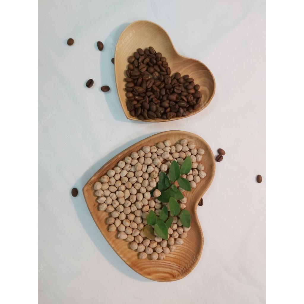 Khay trái tim bằng gỗ tần bì nguyên khối không sơn, hàng Việt Nam sản xuất