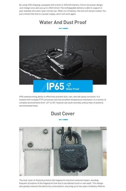 Khóa vân tay thông minh Anytek L3 - Ổ khóa chống trộm thông minh mở khóa bằng vân tay