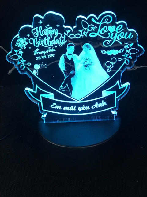 Khung Mica Đèn Led 3d ~ Khung Đèn Mica Trang Trí hình ảnh theo yêu cầu - Mã TIMHOACAI ( không kèm đế )