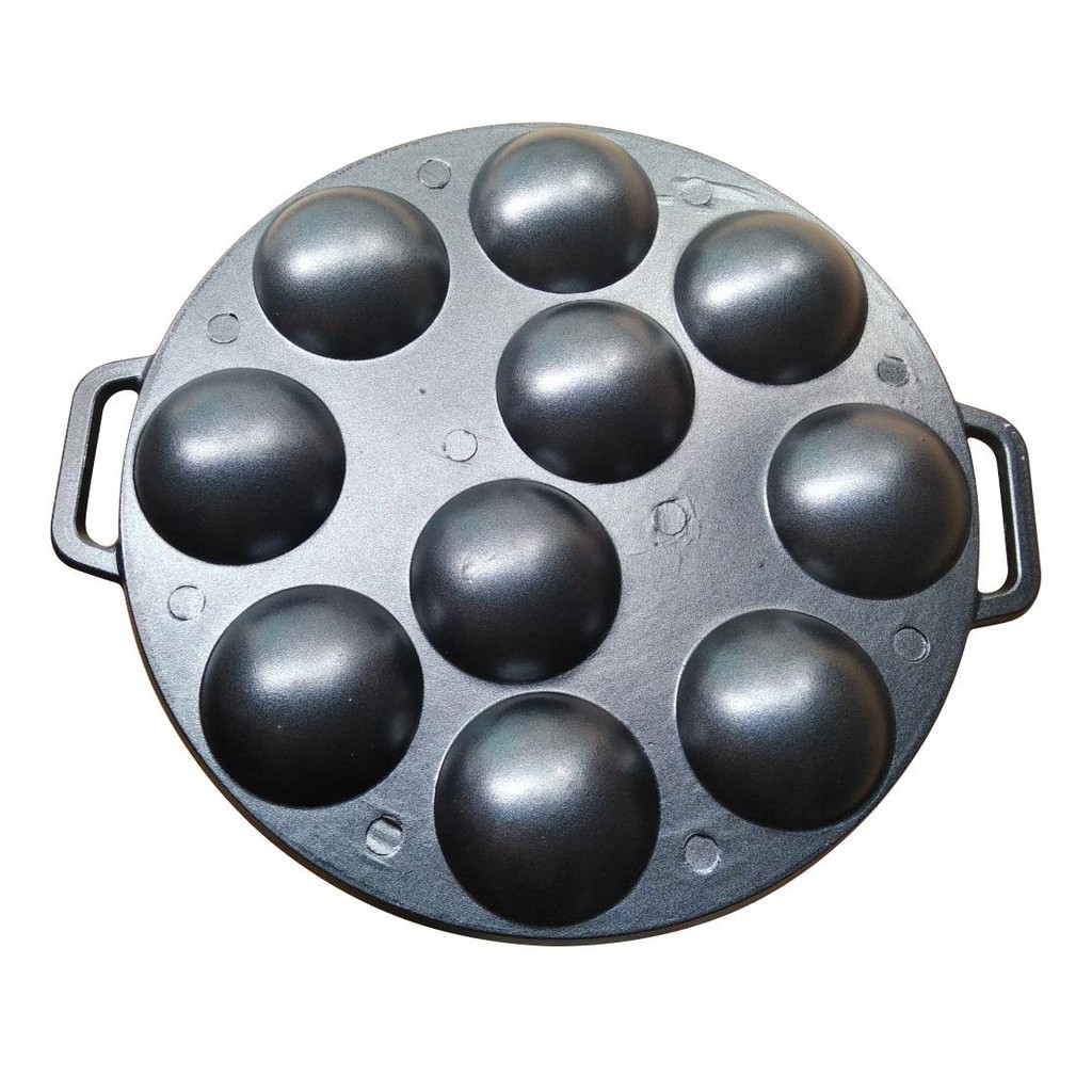 Khuôn Bánh Khọt 10 Lỗ Bằng Gang Chống Dính Có Nắp Khuôn Dày Cao Cấp Dragon