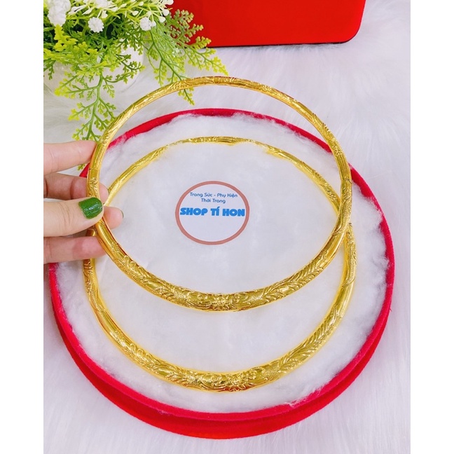 Kiềng cưới bản dẹp chạm hoa mạ vàng 24 cao cấp mẫu mới về