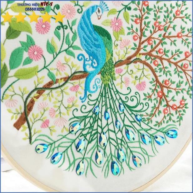 KIT TRANH THÊU TAY TRUYỀN THỐNG Công xanh 511139 (Không phải tranh thêu chữ thập) -chưa thêu