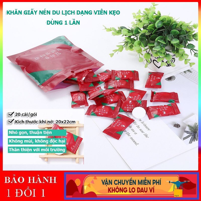 [Lẻ 2 viên] Khăn Giấy Nén Hàn Quốc Dạng Viên Bỏ Túi Du Lịch Tiện Lợi An Toàn