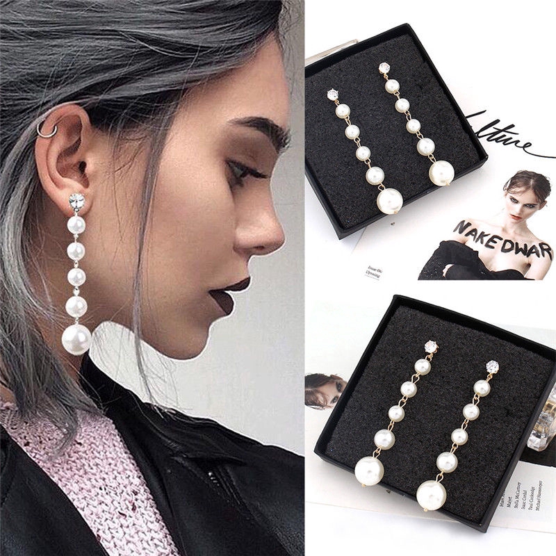 Đôi bông tai kim loại dạng sợi phối ngọc trai đầy quý phái