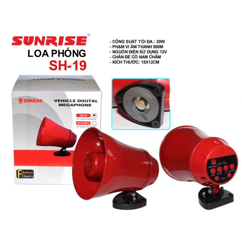 Loa phóng thanh Sunrise SH19 có thu tiếng kẹp bình acquy hoặc sử dụng nguồn 12V DC
