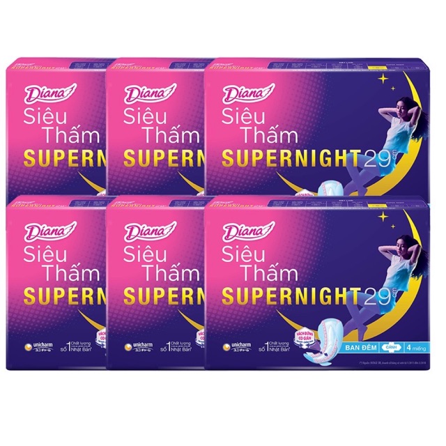 Lốc 6gói Băng Vệ Sinh Diana Ban Đêm 29cm (4miếng/ gói)
