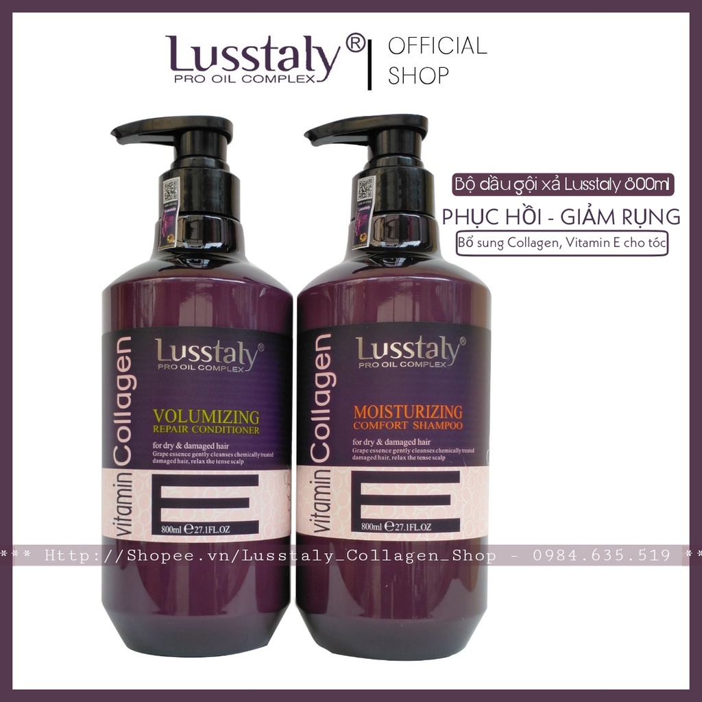 [LUSSTALY CHÍNH HÃNG] Cặp gội xả Lusstaly Collagen 800ml,Dầu gội + xả Lusstaly siêu phục hồi,mềm mượt,ngăn ngừa rụng tóc