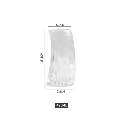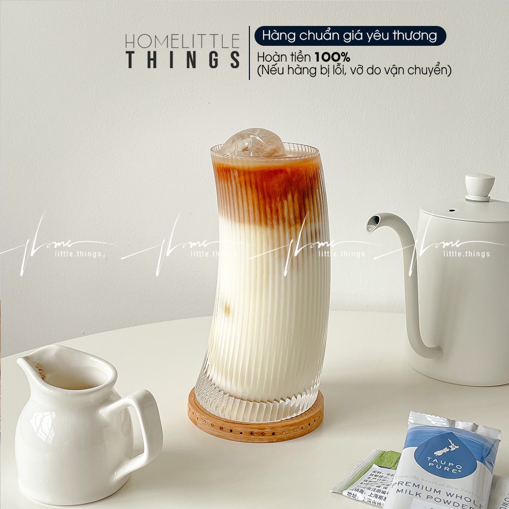 Ly, cốc thủy tinh uống nước, cà phê kiểu dáng tròn cong có vân sọc dọc sang trọng