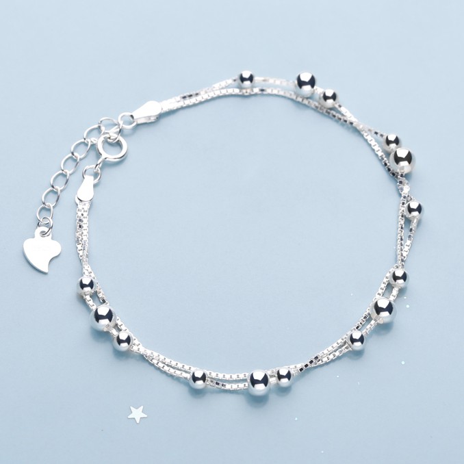 Lắc Tay Bạc Nữ S925 Thiết Kế Dây Kép Phối Hạt Bi Nhỏ Xinh Xắn Dễ Thương - L1773 - Bảo Ngọc Jewelry